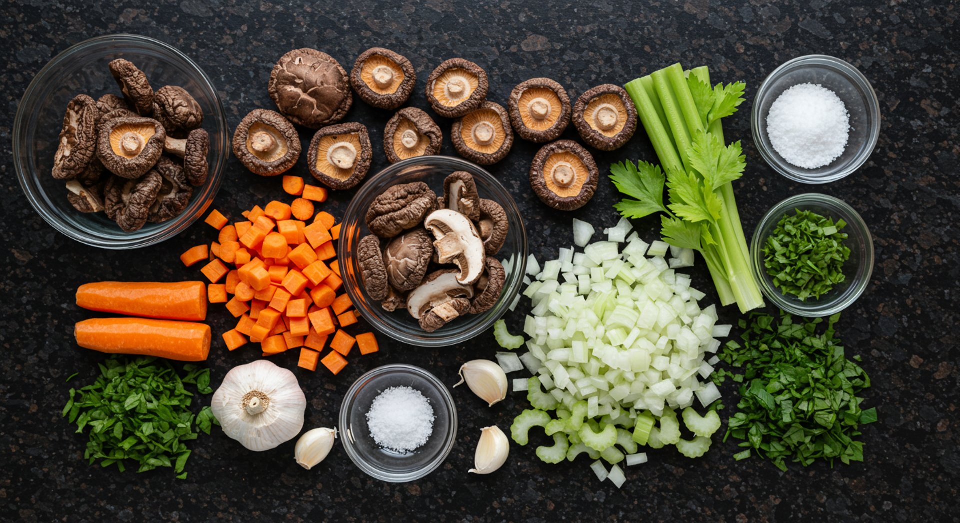 El Cuerpo (Hongos Frescos): 250g de champiñones o portobellos frescos, cortados en láminas. Aportan un sabor a tierra fresca y cuerpo al caldo.