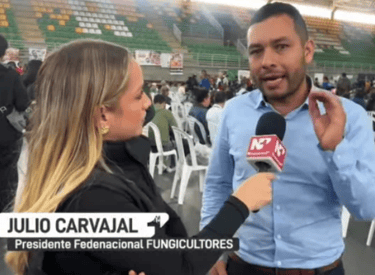 El Presidente de Fedenfungi en una entrevista para un noticiero nacional durante el evento