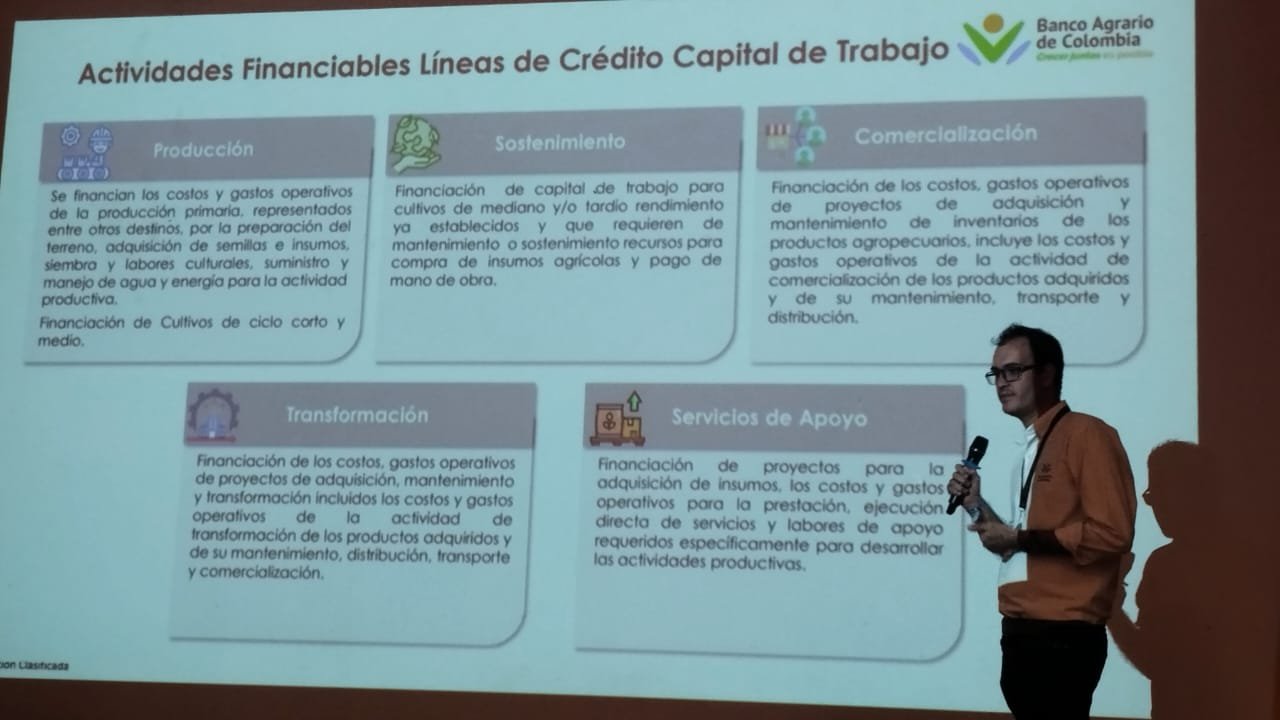 Uno de los momentos más valiosos del encuentro fue la intervención del Banco Agrario de Colombia, que nos compartió las opciones de crédito y programas de apoyo que tienen para emprendimientos relacionados con hongos.