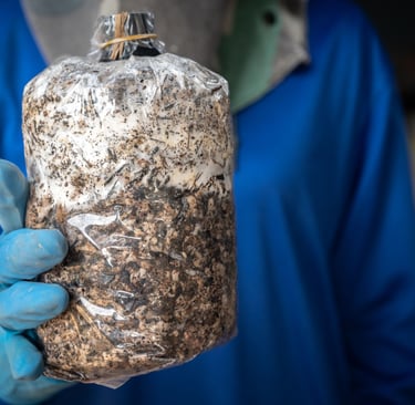 5% Micelio: El micelio, o "semilla" del hongo, es el punto de partida. Se introduce en el sustrato para colonizarlo. La cantidad de micelio suele ser un 5% del peso total del sustrato para garantizar una colonización rápida y uniforme.