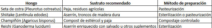 Paja: Fácil de conseguir y económica, ideal para setas de ostra. Se pasteuriza para eliminar competidores.